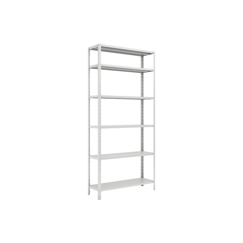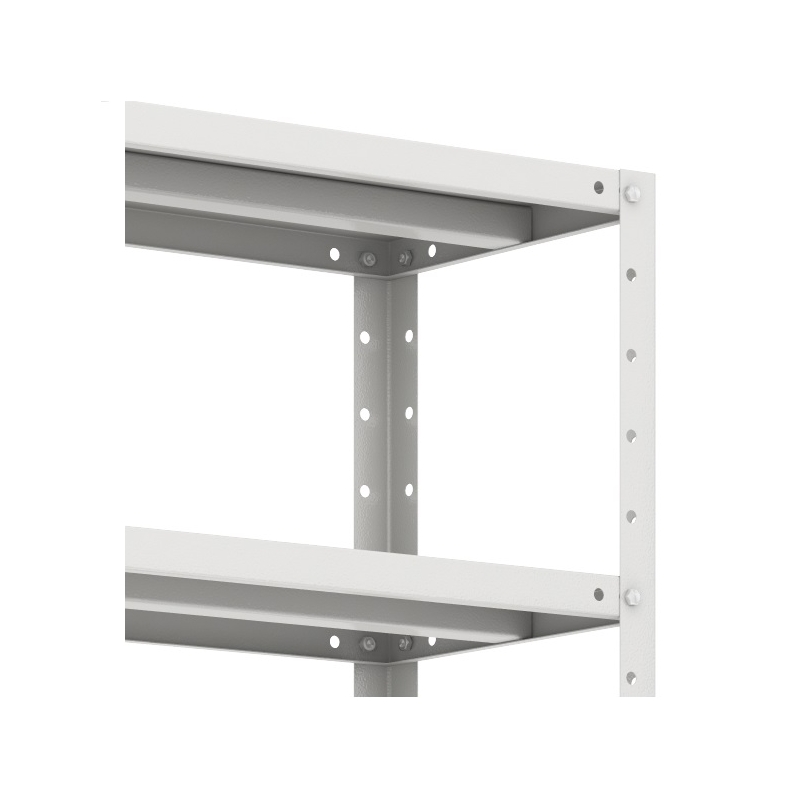Estante de aço com 04 colunas e 06 prateleiras com reforço ômega. Chapa 26/20.