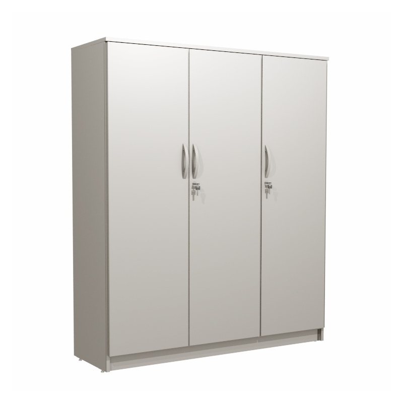 Armário alto plus 160x135x042 (AxLxP), 03 portas com chave + 06 prateleiras internas, em MDP 18mm com borda PVC. Puxador 128mm PVC cromado fosco. Dobradiças de pressão. Sistema de montagem com parafuso minifix.
