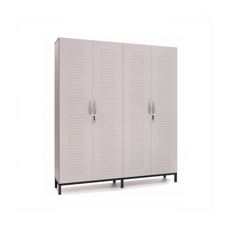 Armário de cozinha 210x180x045 (AxLxP). 04 portas com chave e perfuradas para ventilação. Confeccionado em MDF de 18mm, revestido em laminado melamínico texturizado de baixa pressão nas duas faces. Pés em tubo de aço 30x30 com parede de 1,20mm.