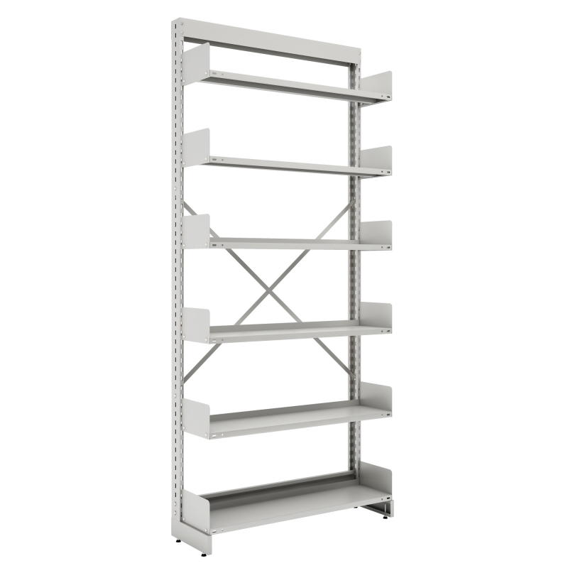 Estante de aço para biblioteca simples 230x096,5x033 (AxLxP), 06 prateleiras com reforço ômega, chapa 24/14.