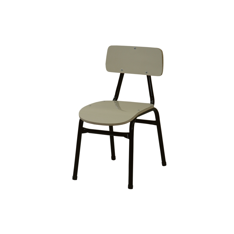 Cadeira escolar PNE pré, estrutura em tubo 3/4 com parede de 1,20mm, com 02 travessas entre as pernas, revestida em fórmica padrões coloridos