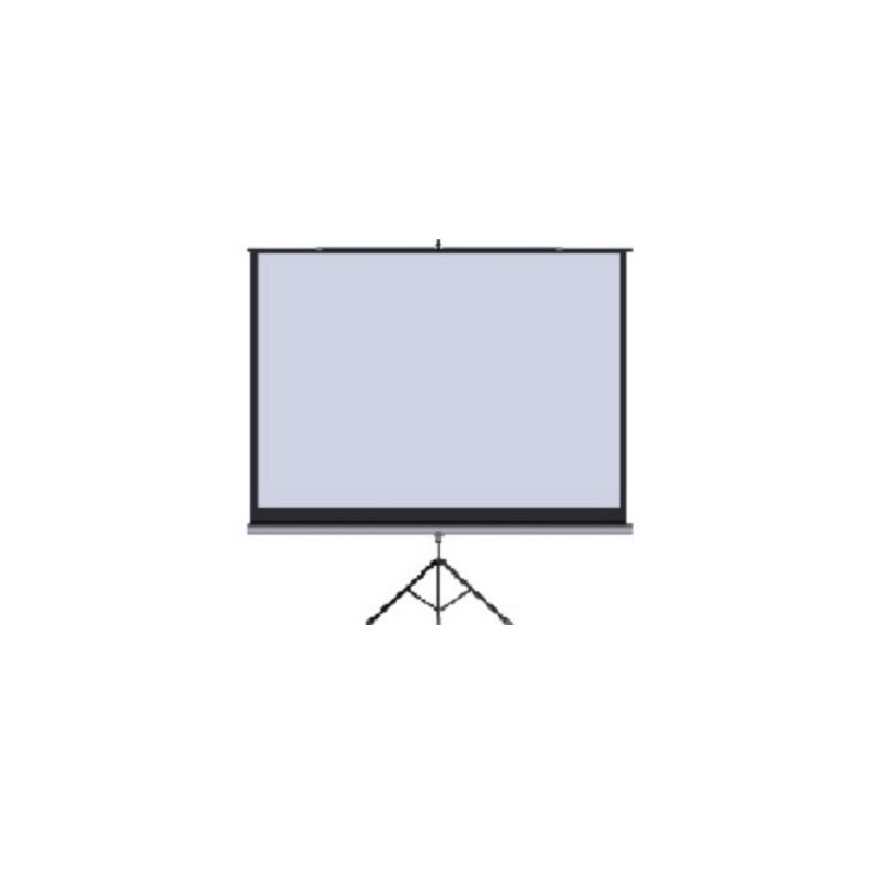 Tela tripé, enrolamento com molas, 100" 200x152cm (Alt. x Larg.), tecido em vinil convencional 1.0 (Matte White), fixação independente através de tripé, com ajuste de inclinação, com estojo na cor preta. Estrutura de aço carbono.